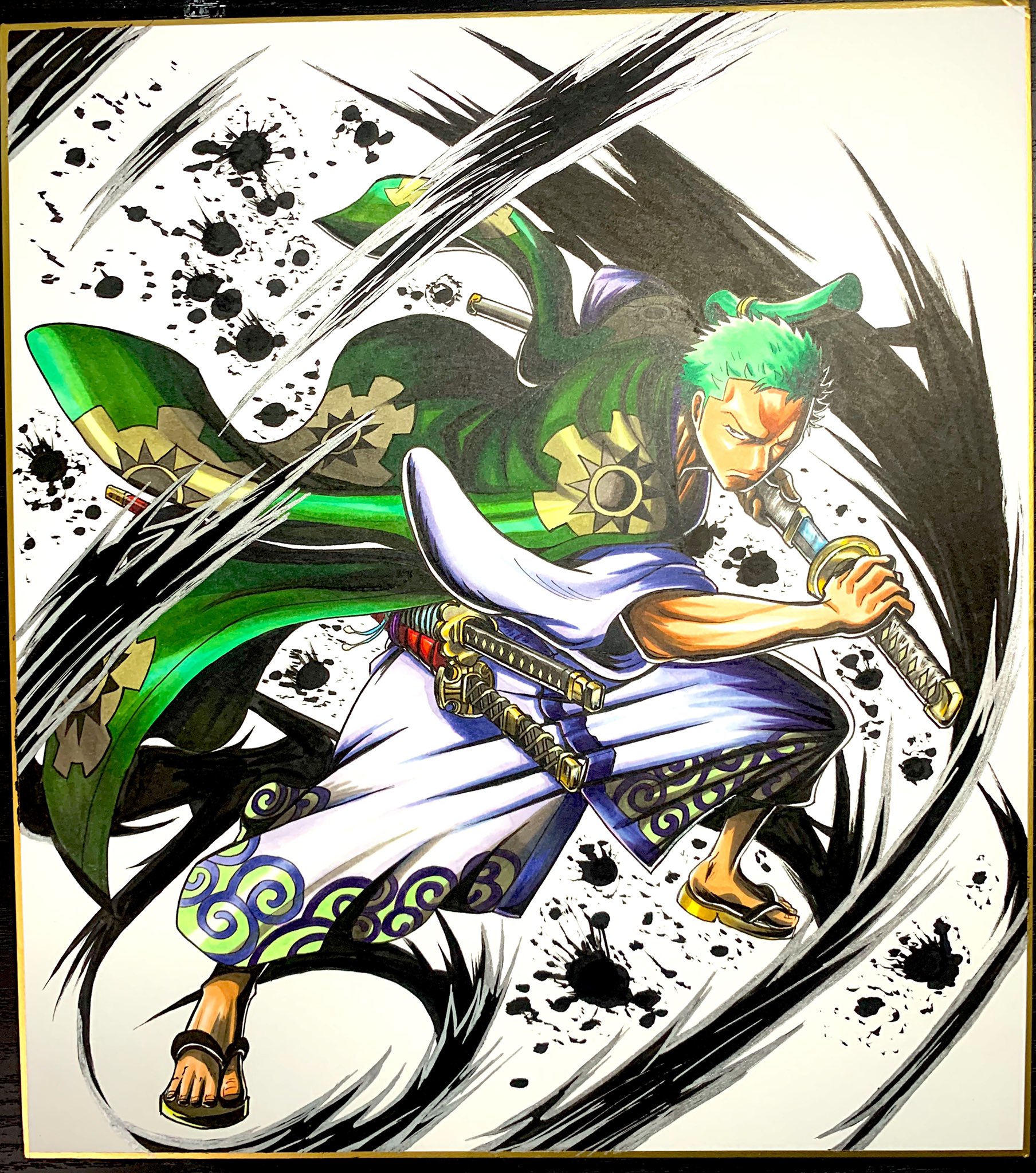 Twitter 上的 Shigequality Pen ロロノア ゾロ Onepiece もちろん背景なしでもカッコイイですが 私的にはこっちが好きですねぇ ヨホホ ワンピース ゾロ ロロノアゾロ 尾田栄一郎 背中の傷は剣士の恥だ 色紙 Shigequality Drawing Anime コピック Copic